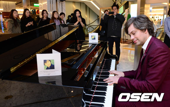 피아니스트 스티브 바라캇이 13일 오전 서울 강남구 삼성동 현대백화점 무역센터점에서 열린 미니 연주회에서 피아노 연주를 하고 있다.