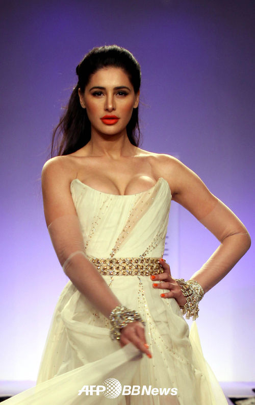 [OSEN=AFP 특약] 15일(현지시간) 인도 뭄바이에서 진행된 '라크메 패션위크'에서 인도 볼리우드 여배우 나르기스 파크리가 디자이너 Shehla Khan의 컬렉션을 선보이고 있다.