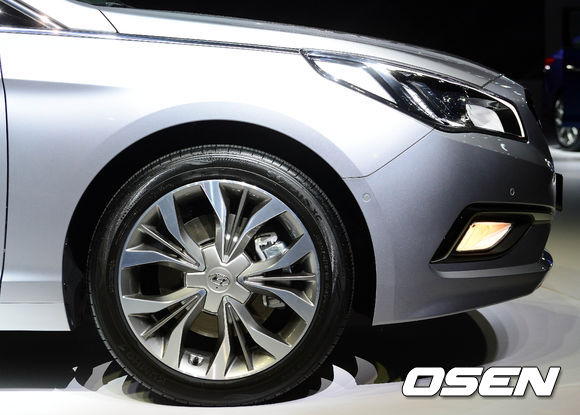 24일 오전 서울 삼성동 코엑스에서 열린 현대자동차의 LF 쏘나타 신차발표회에서 LF 쏘나타가 공개되고 있다.