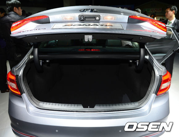 24일 오전 서울 삼성동 코엑스에서 열린 현대자동차의 LF 쏘나타 신차발표회에서 LF 쏘나타가 공개되고 있다.
