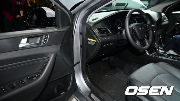 24일 오전 서울 삼성동 코엑스에서 열린 현대자동차의 LF 쏘나타 신차발표회에서 LF 쏘나타가 공개되고 있다.