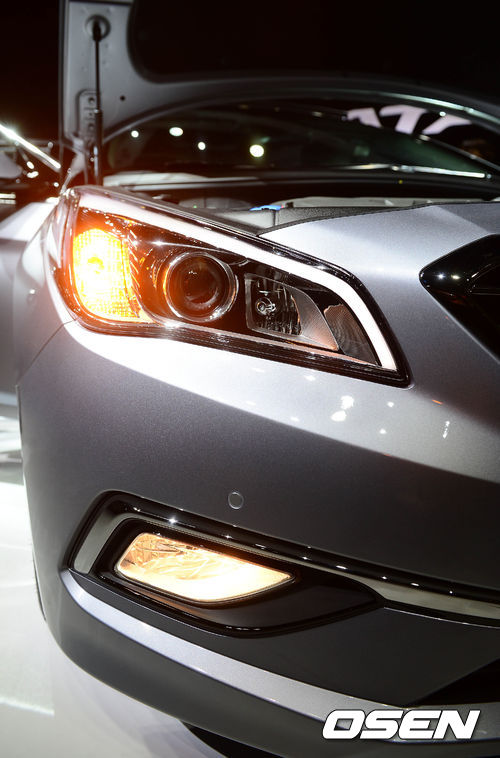 24일 오전 서울 삼성동 코엑스에서 열린 현대자동차의 LF 쏘나타 신차발표회에서 LF 쏘나타가 공개되고 있다.