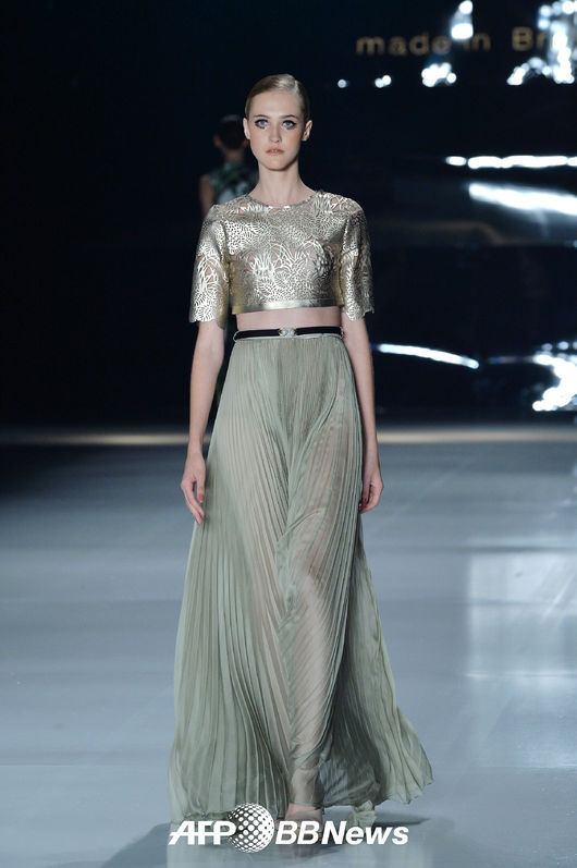 [OSEN=사진팀] 2일(현지시간) 브라질 상 파울로에서 열린 '상파울로 패션 위크(SPFW)' 아드리아나 디그리(Adriana Degreas) 2015 여름 컬렉션 무대에서 한 모델이 의상을 선보이고 있다.