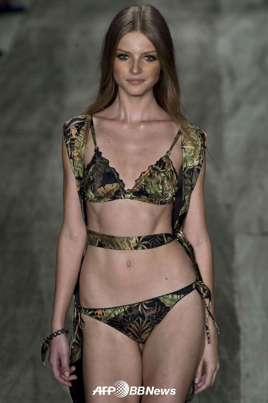 [OSEN=사진팀] 31일(현지시간) 브라질 상 파울로에서 열린 '상파울로 패션 위크(SPFW)' 아드리아나 디그리(Adriana Degreas) 2015 여름 컬렉션 무대에서 한 모델이 의상을 선보이고 있다.