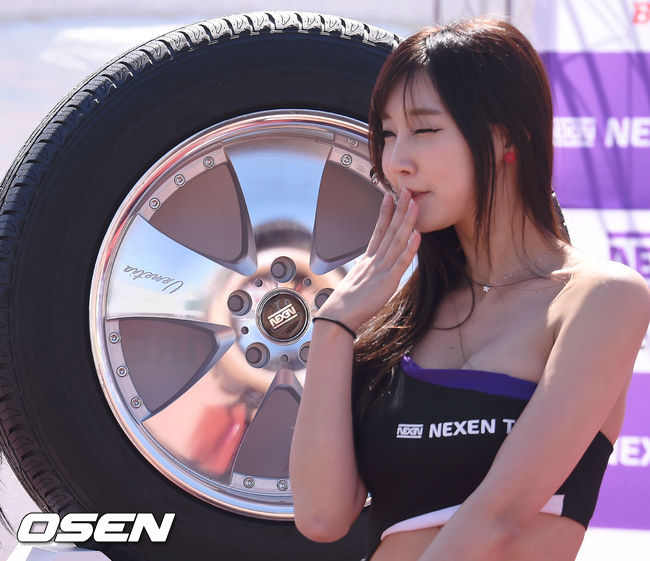 레이싱모델과 함께 하는 포토타임 행사에서 레이싱모델 이유은이 포즈를 취하고 있다.