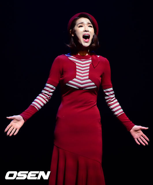 16일 오후 서울 강남구 신사동 BBC아트센터 BBC홀에서 열린 뮤지컬 '보니 앤 클라이드' 미디어콜, 가희가 열창을 하고 있다.