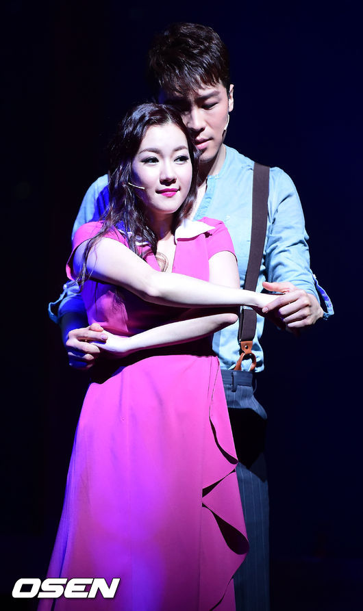 16일 오후 서울 강남구 신사동 BBC아트센터 BBC홀에서 열린 뮤지컬 '보니 앤 클라이드' 미디어콜, 에녹과 오소연이 화려한 공연을 펼치고 있다.