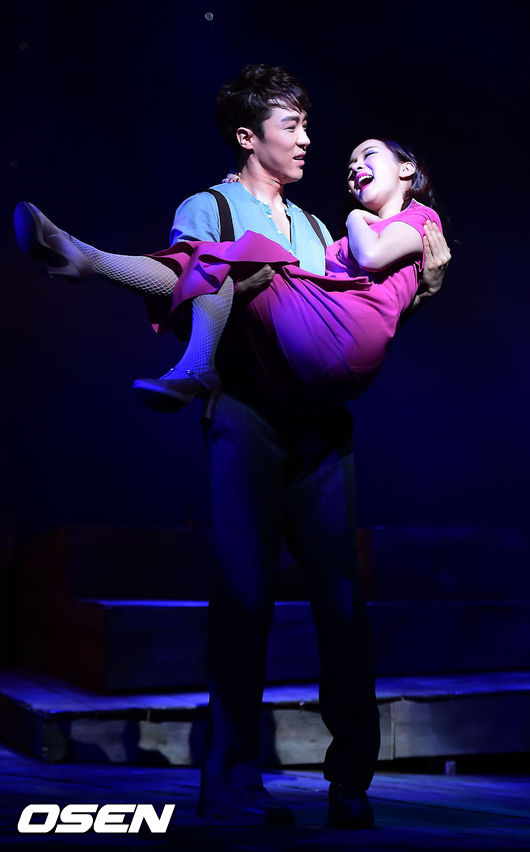16일 오후 서울 강남구 신사동 BBC아트센터 BBC홀에서 열린 뮤지컬 '보니 앤 클라이드' 미디어콜, 에녹과 오소연이 화려한 공연을 펼치고 있다.