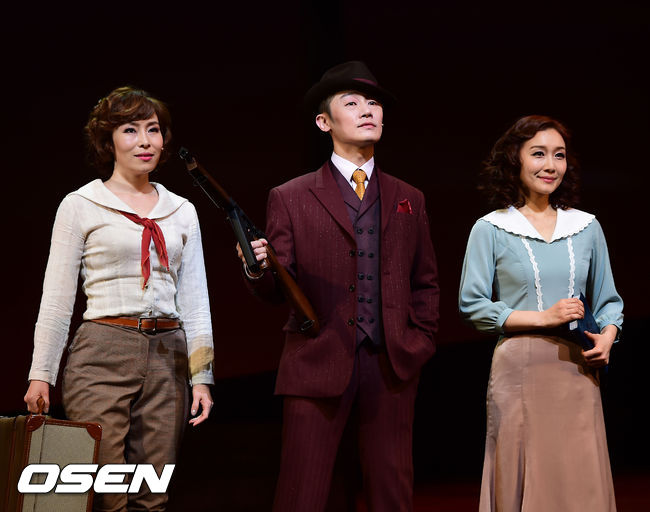 16일 오후 서울 강남구 신사동 BBC아트센터 BBC홀에서 열린 뮤지컬 '보니 앤 클라이드' 미디어콜, 주아 서영주 김아선이 포토타임을 갖고 있다.