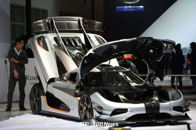 [OSEN=사진팀] 21일(현지시간) 중국 베이징에서 중국 신국제전람중심에서 열린 '오토차이나 2014 (Auto China 2014-Beijing International Automotive Exhibition)'서 마쯔다의 레이싱카 one가 공개되고 있다.