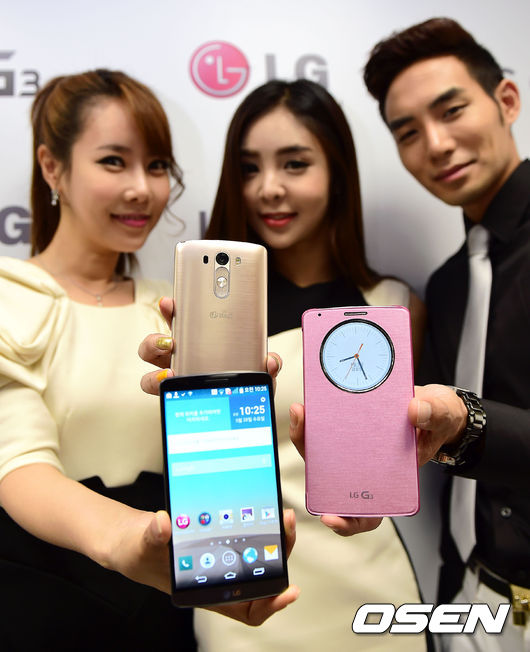 28일 오전 서울 여의도 LG트윈타워에서 'LG G3' 공개 미디어브리핑 행사가 열린 가운데 모델들이 제품을 선보이고 있다.