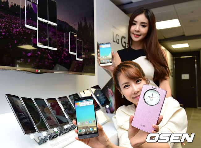 28일 오전 서울 여의도 LG트윈타워에서 'LG G3' 공개 미디어브리핑 행사가 열린 가운데 모델들이 제품을 선보이고 있다.