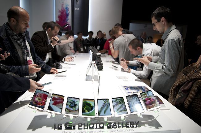 28일 런던 배터시 에볼루션(Battersea Evolution)에서 열린 'LG G3' 공개 행사에서 미디어 및 관계자, 관락객들이 'LG G3'를 체험하고 있다. LG전자는 이날 오전부터 국내 통신 3사를 통해 'LG G3' 판매를 시작했다.