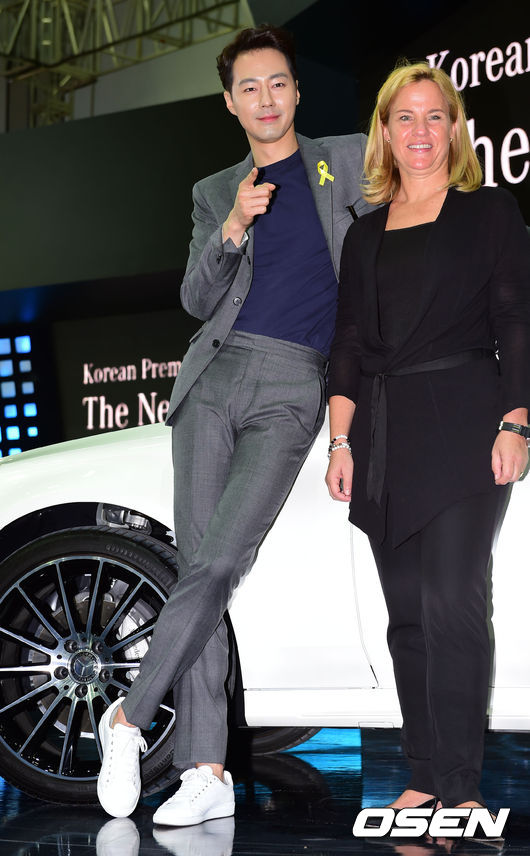 29일 부산 벡스코에서 열린 '2014 부산 모터쇼' 프레스데이 행사 벤츠 부스에서 배우 조인성이 포즈를 취하고 있다.