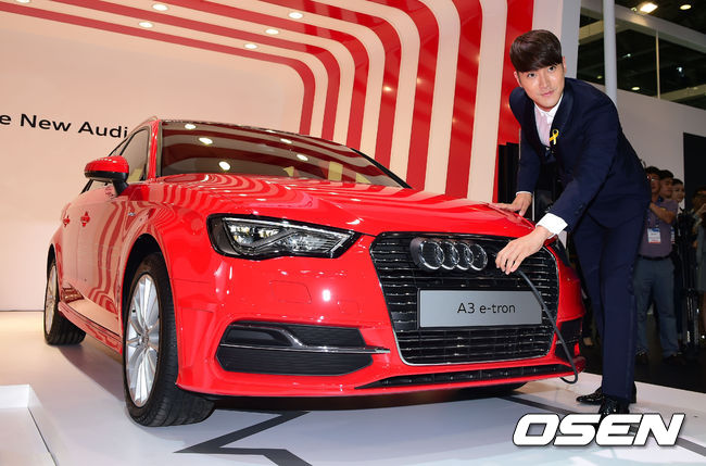 29일 부산 벡스코에서 열린 '2014 부산 모터쇼' 프레스데이 행사 아우디 부스에서 슈퍼주니어 최시원이 포즈를 취하고 있다.