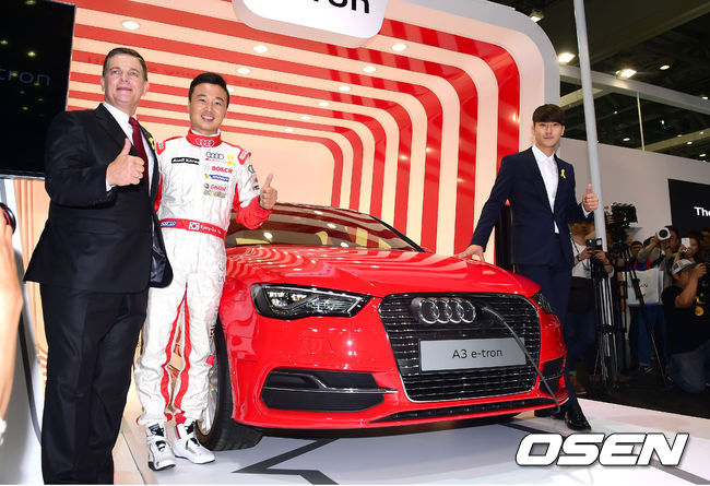 29일 부산 벡스코에서 열린 '2014 부산 모터쇼' 프레스데이 행사 아우디 부스에서 슈퍼주니어 최시원이 포즈를 취하고 있다.