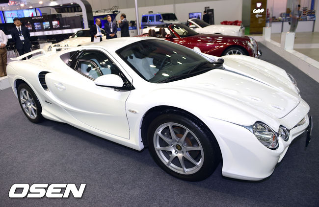 29일 부산 벡스코에서 열린 '2014 부산 모터쇼' 프레스데이 행사 미쯔오카 자동차 부스에서 미쯔오카 오로치가 전시되어 있다.