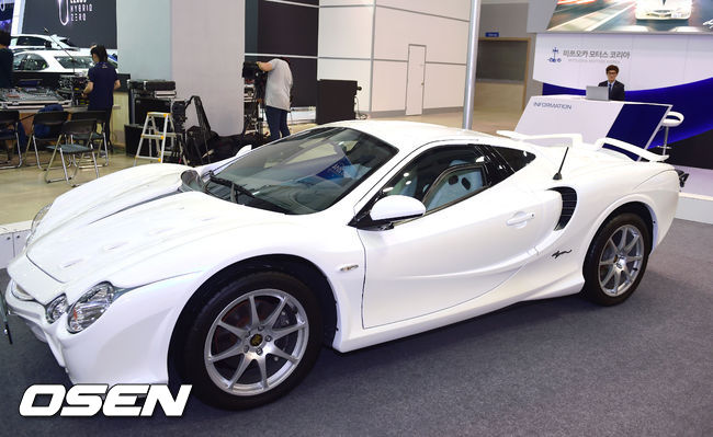 29일 부산 벡스코에서 열린 '2014 부산 모터쇼' 프레스데이 행사 미쯔오카 자동차 부스에서 미쯔오카 오로치가 전시되어 있다.