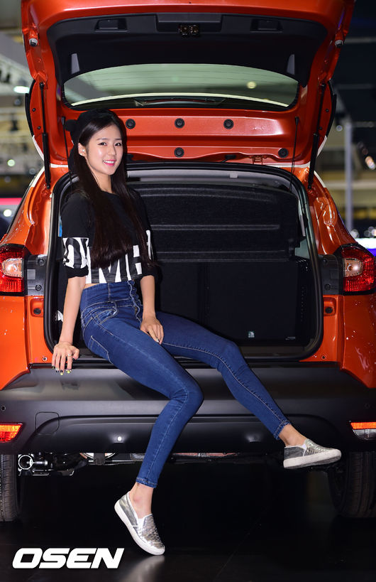 29일 부산 벡스코에서 열린 '2014 부산 모터쇼' 프레스데이 행사에서 롯데 자이언츠 치어리더 박기량이 모터쇼를 찾아 포즈를 취하고 있다.