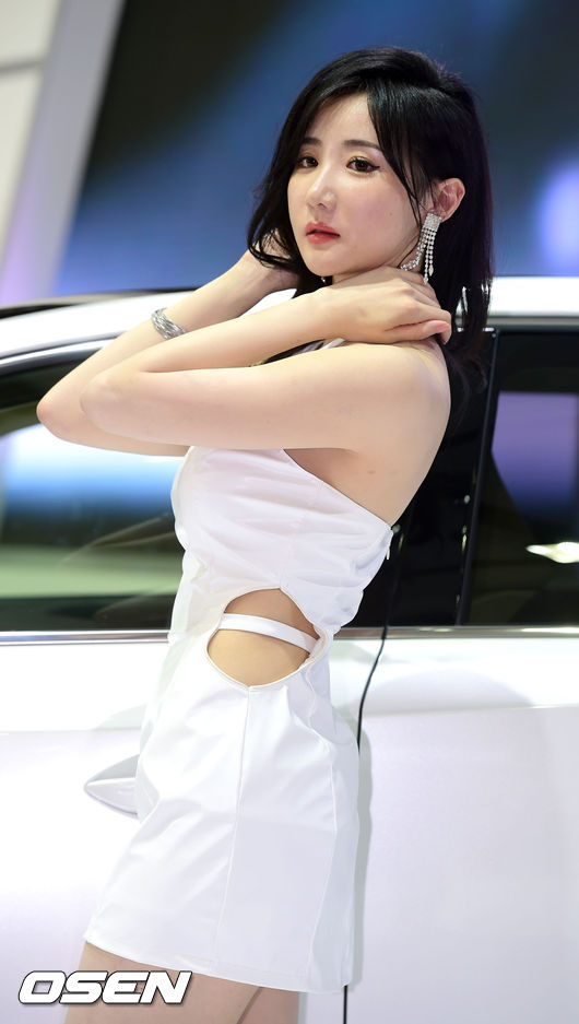 30일 부산 벡스코에서 열린 '2014 부산 모터쇼'에서 레이싱모델 연다빈이 포즈를 취하고 있다.