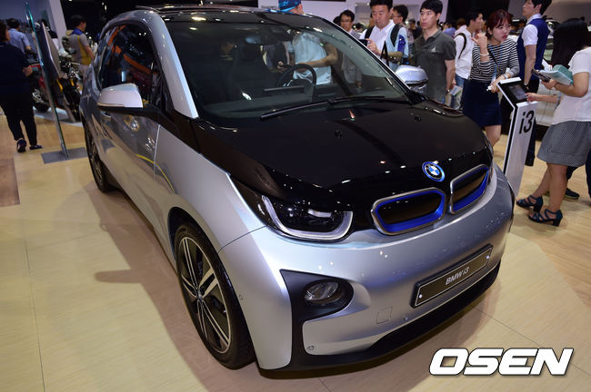 30일 부산 벡스코에서 열린 '2014 부산 모터쇼', BMW 부스에서 전기차 BMW i3가 전시되어 있다.