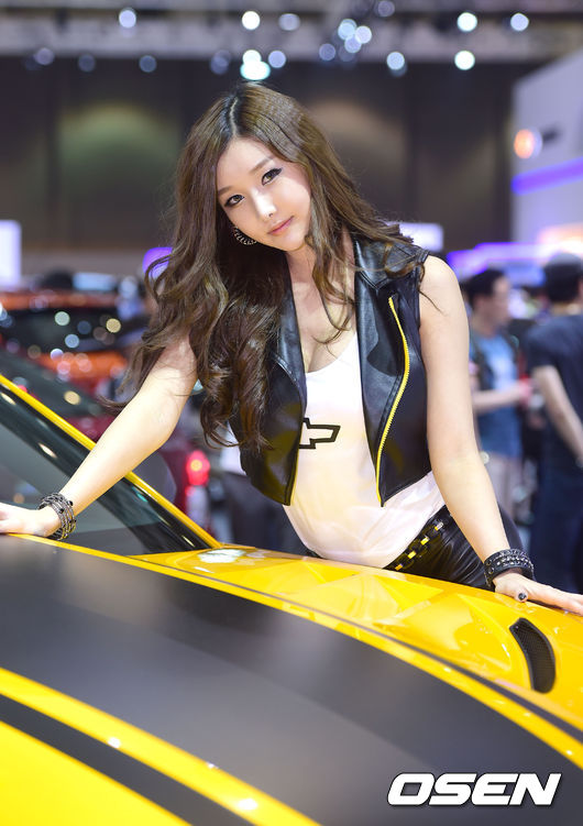 30일 부산 벡스코에서 열린 '2014 부산 모터쇼' 레이싱모델 한송이가 포즈를 취하고 있다.