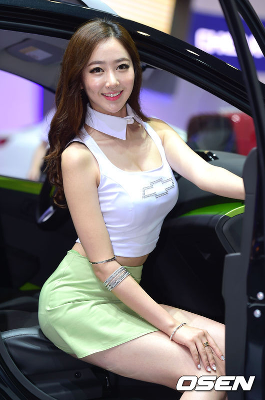 30일 부산 벡스코에서 열린 '2014 부산 모터쇼' 레이싱모델 신해리가 포즈를 취하고 있다.