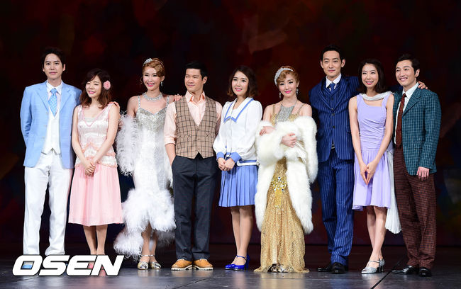 뮤지컬 싱잉인더레인 출연진이 포토타임을 갖고 있다.