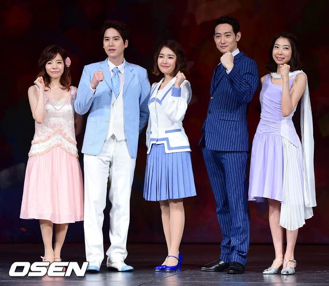 12일 오후 서울 흥인동 충무아트홀에서 그룹 슈퍼주니어 규현, 엑소 백현, 소녀시대 써니, 트랙스 제이 등이 출연하는 뮤지컬 '싱잉인더레인' 프레스콜이 열렸다.