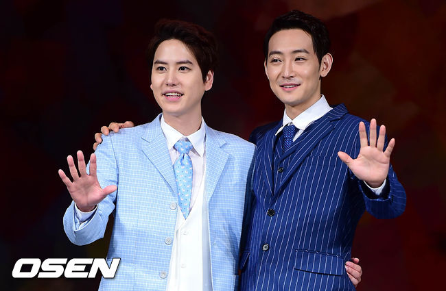 12일 오후 서울 흥인동 충무아트홀에서 그룹 슈퍼주니어 규현, 엑소 백현, 소녀시대 써니, 트랙스 제이 등이 출연하는 뮤지컬 '싱잉인더레인' 프레스콜이 열렸다.