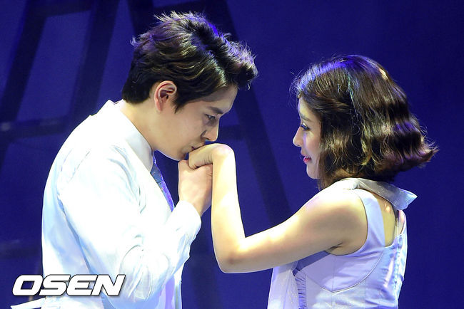 12일 오후 서울 흥인동 충무아트홀에서 그룹 슈퍼주니어 규현, 엑소 백현, 소녀시대 써니, 트랙스 제이 등이 출연하는 뮤지컬 '싱잉인더레인' 프레스콜이 열렸다.