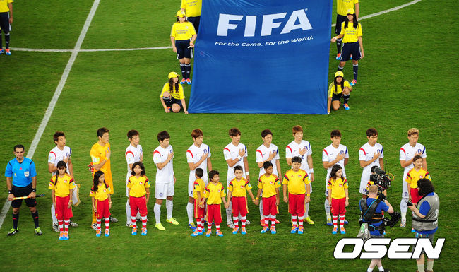 경기에 앞서 한국 선수들이 국민의례를 하고 있다. /rumi@osen.co.kr