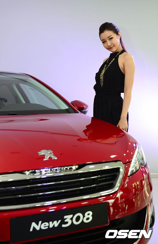 New 푸조 308이 섹시한 모델과 함께 멋진 모습을 선보이고 있다