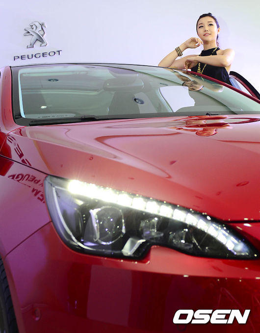 New 푸조 308이 섹시한 모델과 함께 멋진 모습을 선보이고 있다