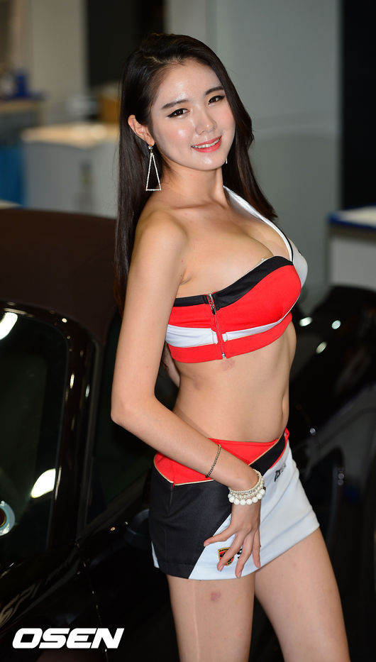 10일 오후 서울 역삼동 코엑스에서 열린 '2014 서울오토살롱' 행사에서 레이싱모델 민유린이 튜닝카 옆에서 포즈를 취하고 있다.