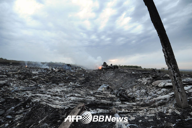 피격된 말레이시아 항공기가 처참하게 타버리고 흔적도 남아있지 않다./photo@osen.co.kr