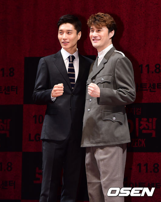 21일 오후 서울 역삼동 LG아트센터에서 열린 뮤지컬 '보이첵(Woyzeck)' 제작발표회에서 배우 김다현, 김수용이 포토타임을 하고 있다.