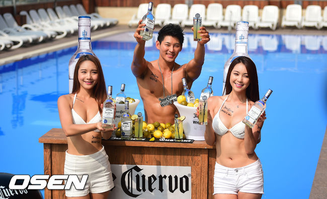 28일 오후 서울 이태원 해밀턴 호텔 야외수영장에서 열린 데킬라 '호세쿠엘보 에스페샬 실버' 출시기념행사에서 모델들이 포즈를 취하고 있다.