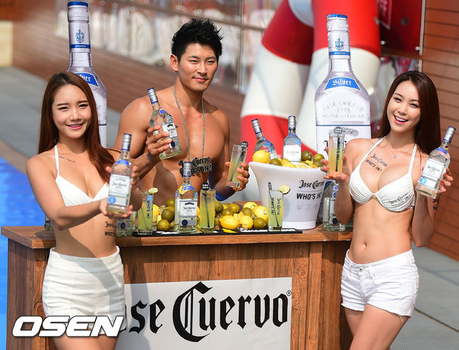 28일 오후 서울 이태원 해밀턴 호텔 야외수영장에서 열린 데킬라 '호세쿠엘보 에스페샬 실버' 출시기념행사에서 모델들이 포즈를 취하고 있다.