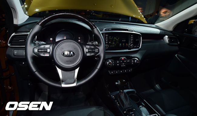 28일 오후 서울 강남구 그랜드 인터콘티넨탈 서울 파르나스 호텔 5층 그랜드볼룸에서 열린 기아자동차 '올 뉴(All New) 쏘렌토' 미디어 발표회에서 올 뉴 쏘렌토가 공개되고 있다.