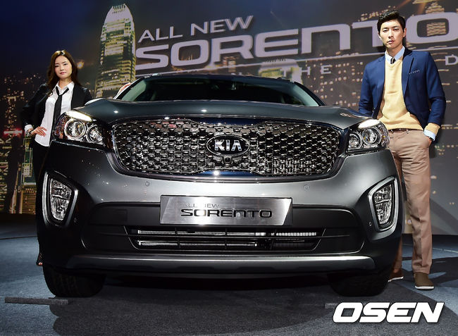 28일 오후 서울 강남구 그랜드 인터콘티넨탈 서울 파르나스 호텔 5층 그랜드볼룸에서 열린 기아자동차 '올 뉴(All New) 쏘렌토' 미디어 발표회에서 올 뉴 쏘렌토가 공개되고 있다.