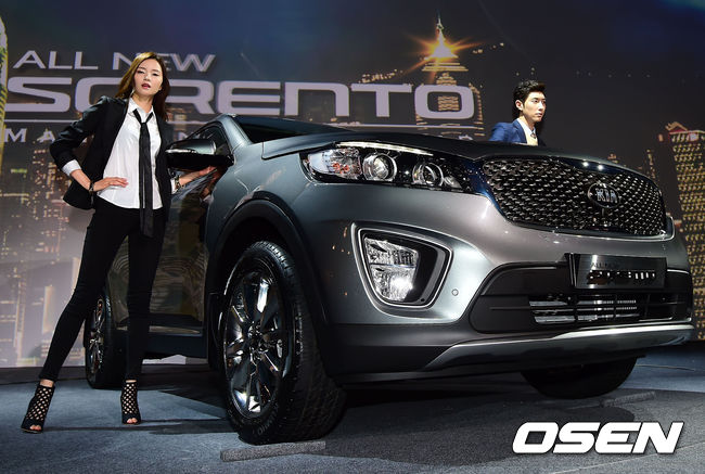 28일 오후 서울 강남구 그랜드 인터콘티넨탈 서울 파르나스 호텔 5층 그랜드볼룸에서 열린 기아자동차 '올 뉴(All New) 쏘렌토' 미디어 발표회에서 올 뉴 쏘렌토가 공개되고 있다.