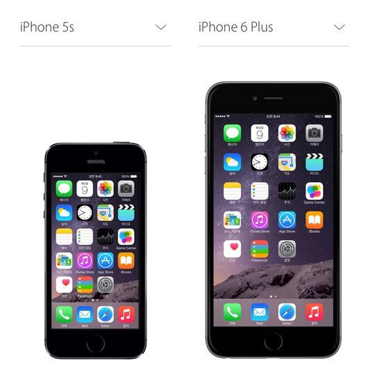 화면이 5.5인치까지 커진 아이폰6플러스가 공개됐다. 이에 기존 아이폰5s와 비교해 크기를 가늠해 볼 수 있는 사진이 주목을 받고 있다.