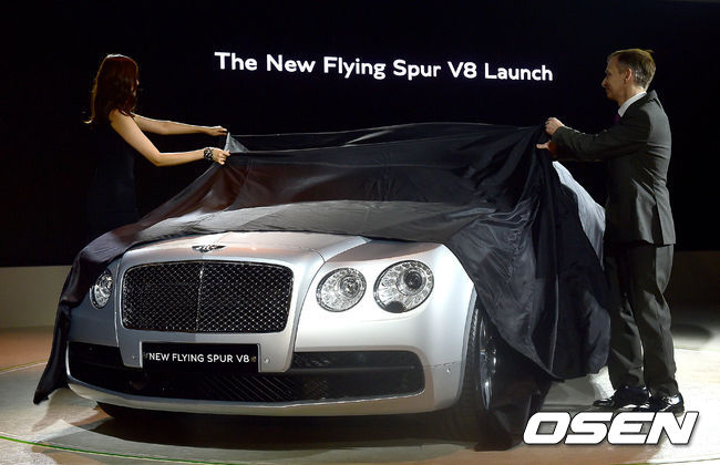 18일 오후 서울 장충동 반얀트리 클럽 앤 스파 서울에서 벤틀리 '플라잉스퍼 V8' 국내 출시행사를 진행했다. 사진은 신차가 공개되는 모습.