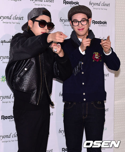 17일 오후 서울 동대문 디자인 플라자에서 열린 '2015 S/S 서울패션위크' 고태용 비욘드 클로젯(beyond closet)에 참석한 블락비 지코와 피오가 포토타임을 하고 있다.
