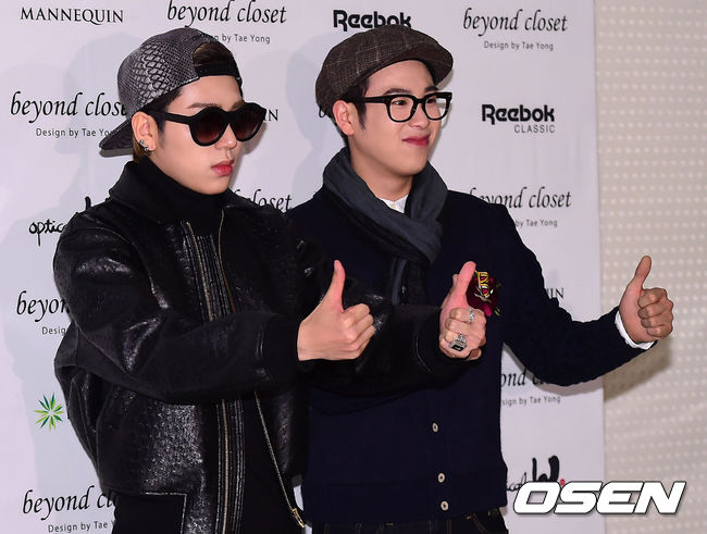 17일 오후 서울 동대문 디자인 플라자에서 열린 '2015 S/S 서울패션위크' 고태용 비욘드 클로젯(beyond closet)에 참석한 블락비 지코와 피오가 포토타임을 하고 있다.