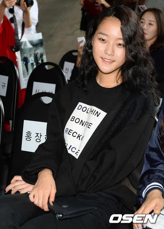 18일 오후 서울 동대문 디자인 플라자에서 열린 '2015 S/S 서울패션위크' 김원중 박지운 컬렉션 '87MM'에 참석한 강승현이 객석에 앉아 쇼 시작을 기다리고 있다.