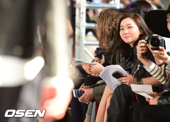 18일 오후 서울 동대문 디자인 플라자에서 열린 '2015 S/S 서울패션위크' 김원중 박지운 컬렉션 '87MM'에 참석한 장윤주가 쇼를 관람하고 있다.