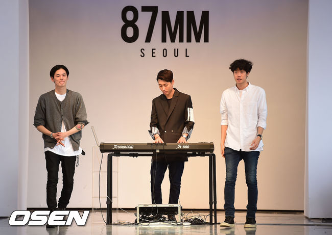 18일 오후 서울 동대문 디자인 플라자에서 열린 '2015 S/S 서울패션위크' 김원중 박지운 컬렉션 '87MM'에서 김원중 박지운 디자이너가 관객들에게 인사를 하고 있다.
