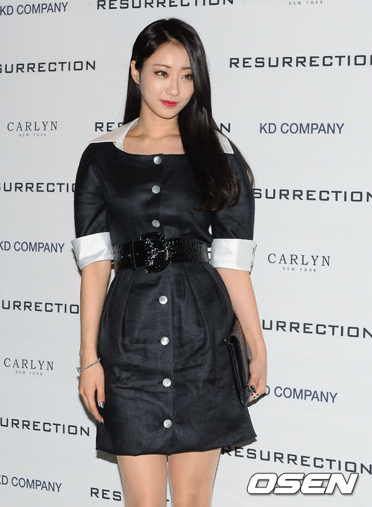 18일 오후 서울 동대문 디자인 플라자에서 열린 '2015 S/S 서울패션위크' 이주영 컬렉션에 참석한 경리가 포토타임을 하고 있다.